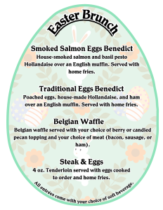 Special Easter Brunch menu by our 4-time Silver Spoon Award-winning Executive Chef, Michael Veres. Reservations required.